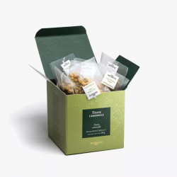 La camomille, plante vivace cultivée notamment dans les zones d'Europe de l'Est dont les fleurs sont récoltées de mai à juillet. Son infusion d'un jaune vif présente un goût doux et fruité avec des notes d'ananas.
