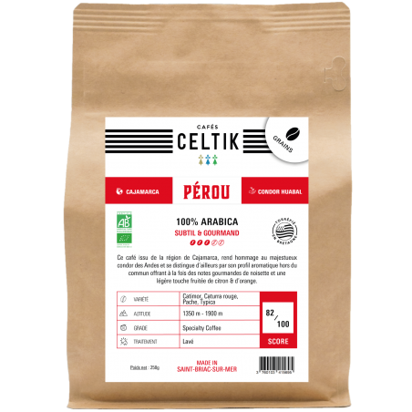 Ce café issu de la région de Cajamarca, rend hommage au majestueux condor des Andes et se distingue d'ailleurs par son profil aromatique hors du commun offrant à la fois des notes gourmandes de noisette et une légère touche de citron et d'orange.
