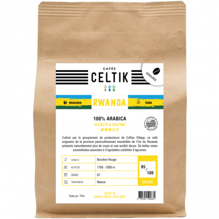 Cultivé par le groupement de producteurs Coffee village, ce café originaire de la province très ensoleillée de l'Est du Rwanda présente naturellement plus de corps et de douces notes acidulées . Notes aromatiques caramélisées associées à d'agréables subtilités d'agrumes.